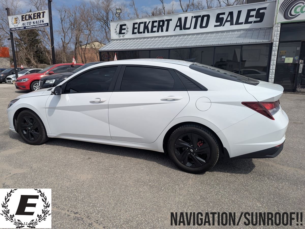 Cruise the Canadian roads in style and comfort with this sleek 2023 Hyundai Elantra Preferred IVT with Tech Package!! This stunning white sedan, available now at Eckert Auto Sales, is ready to turn heads with its modern design and practical features. The black interior offers a sophisticated and comfortable cabin, perfect for your daily commute or weekend adventures. With only 116,500km on the odometer, this Elantra is just getting started, promising miles of reliable driving pleasure. This Elantra Preferred IVT boasts a fuel-efficient 2.0L 4-cylinder engine paired with a smooth variable transmission. This efficient pairing ensures a responsive and enjoyable driving experience, all while keeping your fuel costs in check. The Elantra's front-wheel drive offers confident handling in various driving conditions. It's the perfect combination of style, performance, and value. Check out the big screen infotainment centre with Apple Carplay, Android Auto, Reverse Camera and Navigation.